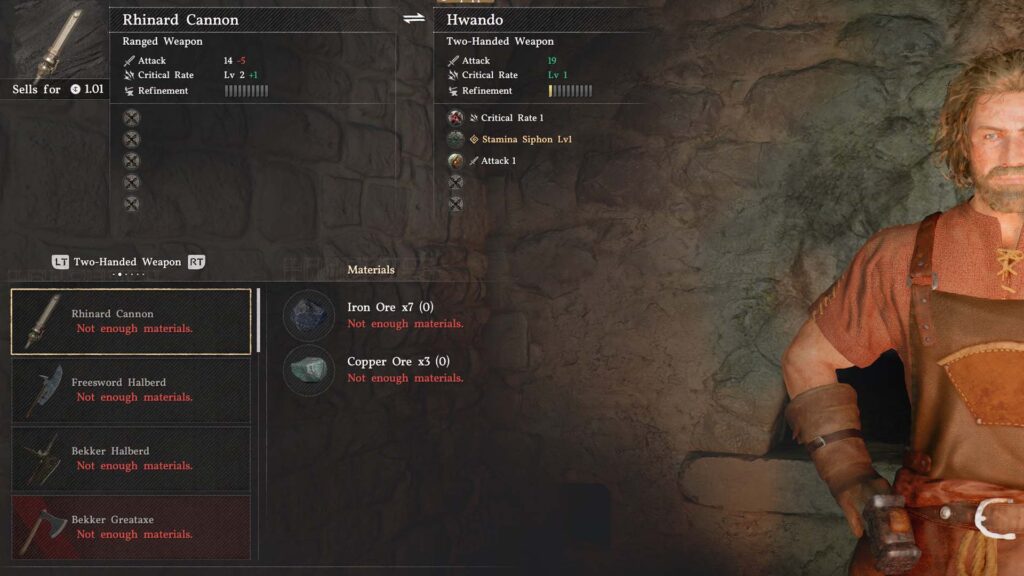 Στο θέμα του εξοπλισμού, δεν χρειάζεται να κυνηγάς συνεχώς καινούρια αντικείμενα. Αυτό που κάνει πραγματική διαφορά είναι η αναβάθμιση του gear που ήδη έχεις. Οι πρώτες αναβαθμίσεις είναι φθηνές και δίνουν μεγάλο boost ή καινούργια passives – τα περισσότερα από τα πρώτα σκουλαρίκια που θα σηκώσεις αποκτούν passive health regen μετά από αναβάθμιση -, οπότε αξίζει να ανεβάσεις τον εξοπλισμό σου μέχρι ένα βασικό επίπεδο πριν αρχίσεις να σκέφτεσαι την αντικατάσταση. Τα υλικά που χρειάζεσαι βρίσκονται εύκολα στον κόσμο ή αγοράζονται από vendors, οπότε δεν υπάρχει λόγος να το αποφεύγεις.