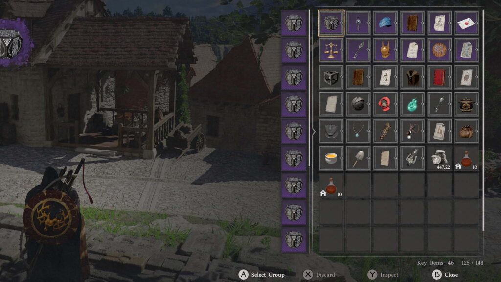 Ένα quality of life που προσφέρει το Crimson Desert είναι το “group”. Αν επιλέξεις ένα αντικείμενο, κάποιο φαγητό για παράδειγμα, και κάνεις group item, τότε θα μπουν όλα τα φαγητά μαζί σε ένα slot. Προσοχή όμως, γιατί αυτό δεν μειώνει την κατανάλωση χώρου. Κάθε αντικείμενο που έχεις πάνω σου, εξακολουθεί να τρώει ένα slot.