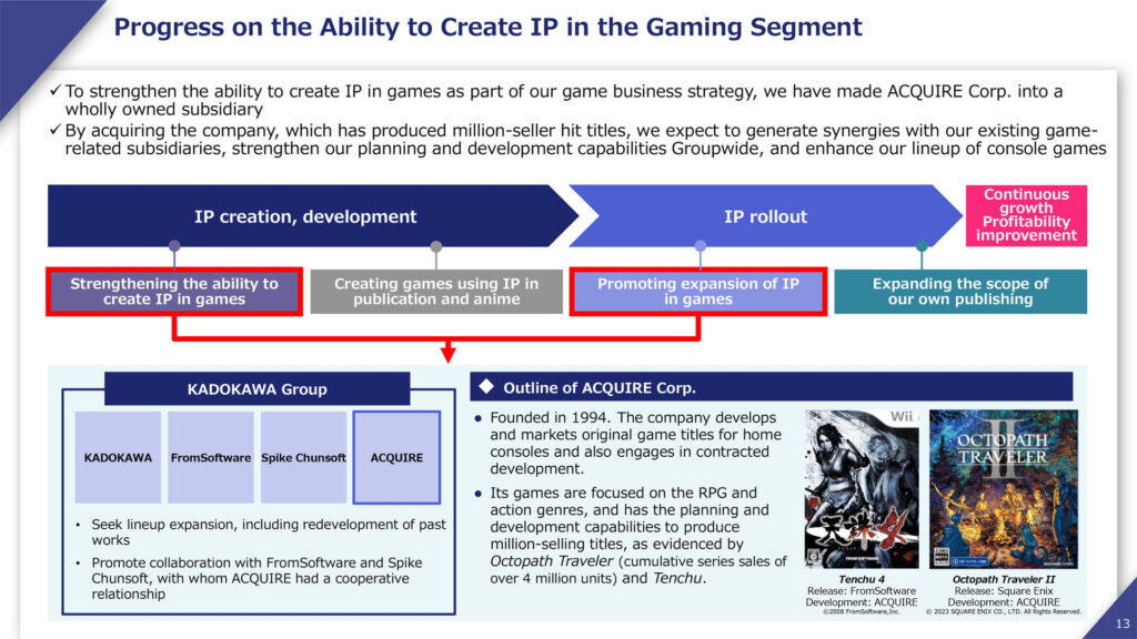 Σήμερα η μητρική εταιρεία της FromSoftware, Kadokawa Corporation, ανακοίνωσε την προσθήκη της Acquire στο δυναμικό της.