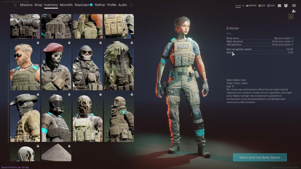 Άλλα στοιχεία που ξεχωρίζουν είναι η ύπαρξη οχημάτων όπως αμάξια και ελικόπτερα, καθώς υπάρχουν στιγμές που βγαίνουν “παγανιά” μεγαλύτεροι τύποι εχθρών που χρειάζονται βαρύτερο εξοπλισμό. Επίσης, υπάρχει η δυνατότητα επιλογής “sleeve”. Ουσιαστικά, ως κλώνος, έχεις την δυνατότητα να διαλέξεις χαρακτήρα ο οποίος χαρακτηρίζεται από κάποια διαφοροποιημένα στατιστικά (γρηγορότερο search κλπ) και το ποια slots για armor plates έχει ανοιχτά. Δεν μπορούν να φορέσουν όλα τα sleeves full armor. Κάποια λειτουργούν καλύτερα με πιο γρήγορα και stealthy playstyles, ενώ άλλα μπορούν να εκτελέσουν τον ρόλο του “tank” ευκολότερα (ένα ακόμα στοιχείο που προτρέπει το partying).
