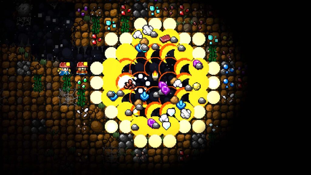 Ίσως το πιο αναπάντεχα καλοσχεδιασμένο κομμάτι του Cattle Country είναι το σύστημα εξόρυξης. Αντί να μπαίνεις σε “επίπεδα” τύπου dungeon, εδώ το ορυχείο είναι μια τεράστια κάθετη δομή με side-scrolling οπτική. Μπορείς να σκάψεις προς τα κάτω ή πλαγίως, να τοποθετήσεις σκάλες, πλατφόρμες και φώτα και να φτιάξεις το δικό σου δίκτυο.