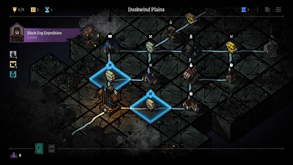 Κάθε expedition ακολουθεί μια γνώριμη, αλλά αποτελεσματική λογική. Ξεκινάς από το Departure Ground, επιλέγεις τον διοικητή σου, τα αρχικά πιόνια και τις βασικές ικανότητες, και στη συνέχεια χαράζεις πορεία σε έναν χάρτη γεμάτο διακλαδώσεις. Μάχες, επιλογές, τυχαία γεγονότα και αγορές συνθέτουν μια διαδρομή όπου καμία επιλογή δεν είναι πραγματικά ουδέτερη.
