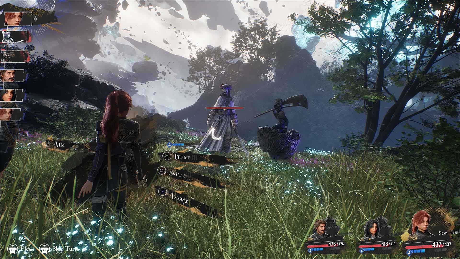 Κάτω από την καλλιτεχνική του επιφάνεια κρύβεται ένα εξαιρετικό σύστημα μάχης με βάση τους γύρους (turn-based), που συνδυάζει παραδοσιακό RPG μηχανισμό με δράση βασισμένη στα αντανακλαστικά. Κάθε χαρακτήρας διαθέτει μια τυπική επίθεση για τη δημιουργία Action Points, μια σειρά από δεξιότητες και ένα μοναδικό style μάχης. H εκτέλεση των δεξιοτήτων μπορεί να περιλαμβάνei inputs με βάση το ρυθμό/χρονομετρημένες πιέσεις κουμπιών (QTE). Οι εχθροί, εν τω μεταξύ, επιτίθενται με μοτίβα που είναι ξεκάθαρα προαναγγελμένα και μπορούν να αποφευχθούν (dodge) ή να αποκρουστούν (parry) σε πραγματικό χρόνο, πάλι μεσω QTE.