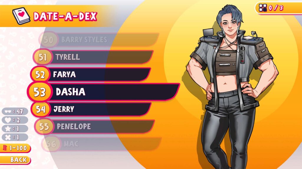 Το σενάριο είναι το δυνατότερο χαρτί του Date Everything!, αλλά δεν είναι πάντα ισάξιο των προσδοκιών. Ορισμένες ιστορίες είναι καλοδουλεμένες, με εξαιρετικά καλογραμμένους διαλόγους και σταδιακή αποκάλυψη βάθους, όπως η σχέση ανάμεσα στην ηλεκτρική εγκατάσταση Eddie & Volt που λειτουργεί σαν κρυφή underground σκηνή. Άλλες, όμως, είναι πιο πρόχειρες. Μερικές αλληλεπιδράσεις τελειώνουν σε 2-3 click με ξεκάθαρο “θες φιλία, αγάπη ή μίσος”; χωρίς να έχει προηγηθεί ουσιαστική ανάπτυξη.