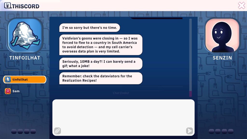 Το παιχνίδι αποφεύγει τη γραμμική αφήγηση. Δεν έχεις “κεντρική” ιστορία, αλλά αντίθετα, εσύ αποφασίζεις πού θες να πας, με ποιον να μιλήσεις και πώς να διαχειριστείς τις διαθέσιμες αλληλεπιδράσεις σου. Υπάρχει βέβαια ένα ευρύτερο υπόβαθρο, που αφορά την εταιρεία Valdivian και τον ρόλο των Dativators, τα γυαλιά που σου επιτρέπουν να δεις τον “αόρατο” κόσμο γύρω σου. Υπάρχει έντονος υπαινιγμός για στρατιωτική εκμετάλλευση της τεχνολογίας, ένα στοιχείο που προσθέτει σάτιρα απέναντι στη σύγχρονη τεχνολογική παράνοια.