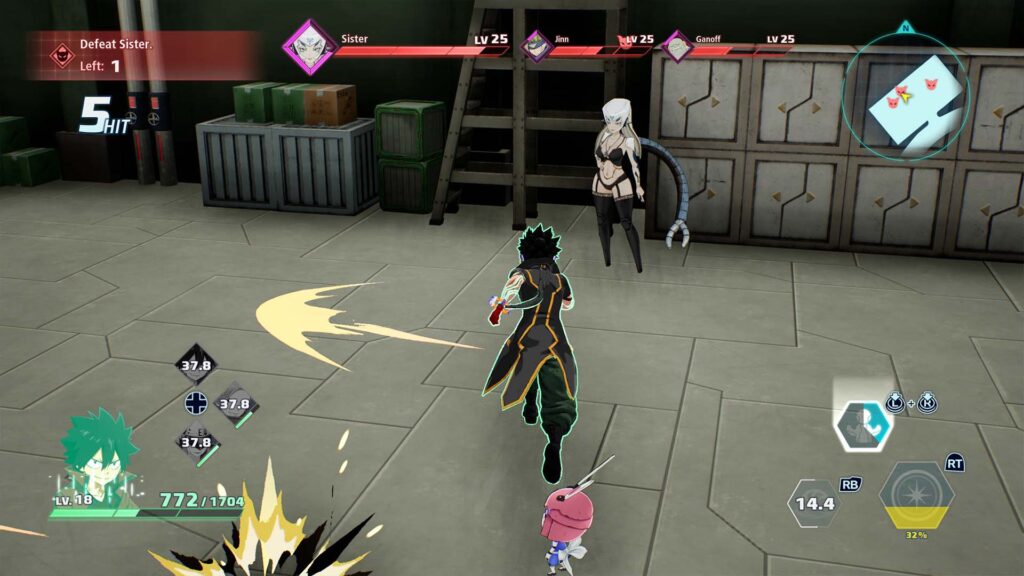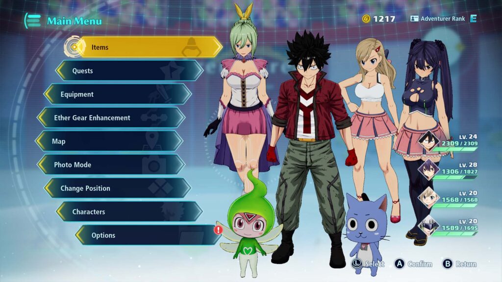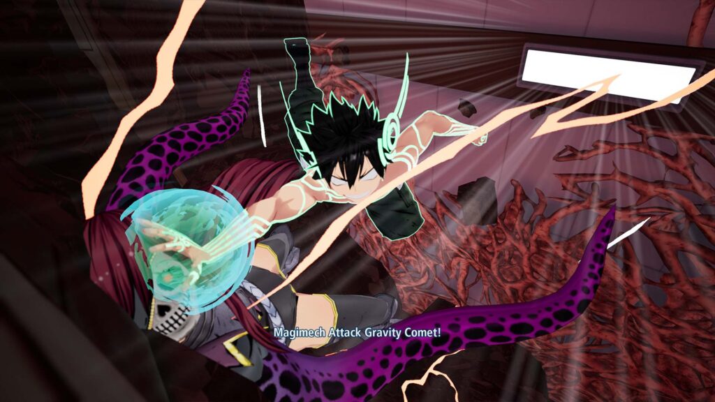 Οι μάχες στο EDENS ZERO βασίζονται σε ένα απλό, αλλά αρκετά ευχάριστο action RPG σύστημα. Μπορούμε να εκτελέσουμε βασικά combos με απλές επιθέσεις, να χρησιμοποιήσουμε ειδικές ικανότητες μέσω του Ether Gear και να εναλλάσσουμε ανάμεσα σε τέσσερις διαφορετικούς χαρακτήρες. Αυτή η δυνατότητα εναλλαγής είναι από τα πιο διασκεδαστικά στοιχεία, καθώς κάθε ήρωας έχει το δικό του style. Για παράδειγμα, ο Shiki χρησιμοποιεί βαρυτικές δυνάμεις για να μαζεύει εχθρούς σε ένα σημείο, η Rebecca μετατρέπει τον Happy σε rifle, ενώ η Witch εναλλάσσει στοιχεία για να προκαλεί status effects.