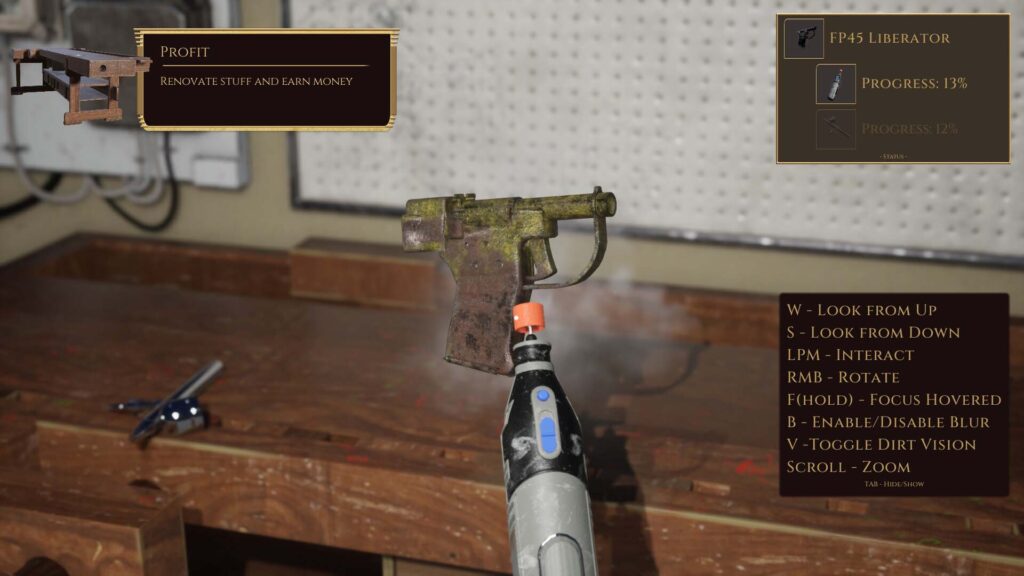 Η διαδικασία καθαρισμού έχει σχεδιαστεί ως ένα mini-game στο οποίο πρέπει να αφαιρέσουμε τη σκουριά και να γυαλίσουμε τα αντικείμενα πριν τα εκθέσουμε. Προσωπικά, ήταν το αγαπημένο μου στοιχείο και ίσως να ήθελα ένα ξεχωριστό παιχνίδι, βασισμένο μόνο σε αυτό το χαρακτηριστικό. Έχει την ίδια ικανοποίηση με το να καθαρίζεις πράγματα στο PowerWash Simulator. Δυστυχώς όμως, δεν παραλείπονται τα προβλήματα και εκεί. Ο χειρισμός είναι αρκετά αδέξιος και η περιστροφή των αντικειμένων για τον καθαρισμό συχνά απαιτεί να κάνεις zoom-out σε ενοχλητικό βαθμό. Μας δίνεται η επιλογή να ολοκληρώσουμε αυτόματα τη διαδικασία καθαρισμού αφού φτάσουμε σε ένα συγκεκριμένο ποσοστό προόδου, αλλά το γεγονός ότι αυτή η συντόμευση είναι τόσο δελεαστική υποδεικνύει τη μονοτονία.