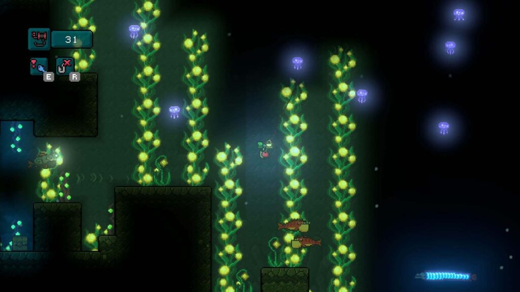 Επιπλέον, η εξερεύνηση γίνεται πιο περίπλοκη όσο προχωράς. Μεταγενέστερα unlocks σου επιτρέπουν να χειρίζεσαι ρεύματα μέσα στο νερό για να φτάνεις σε μυστικές περιοχές, σπηλιές και σπάνια ψάρια. Αυτό το σύστημα λειτουργεί σχεδόν σαν puzzle-platformer, συνδυάζοντας τη χαλαρή αίσθηση του ψαρέματος με στοιχεία που θυμίζουν παλιά Pokémon games.