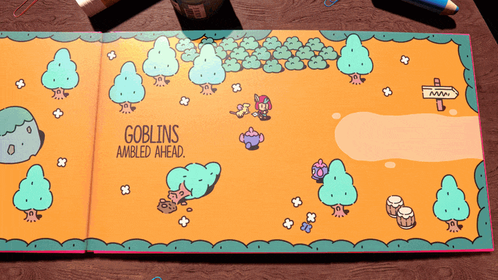 Όταν βγαίνουμε από το βιβλίο μπορούμε να περπατήσουμε πάνω στις σελίδες του, να αλληλεπιδράσουμε με αυτό και να εξερευνήσουμε το γραφείο του Sam προς αναζήτηση του επόμενου στόχου μας ή δραστηριότητάς μας. Όταν βρισκόμαστε στην τρίτη διάσταση ο Jot αλλά και οι εχθροί μας αποκτούν μια εμφάνιση μικρής παιχνιδοφιγούρας που θυμίζει την αντίστοιχη του The Legend of Zelda: Link’s Awakening αλλά δένει αρμονικά με τον κόσμο γύρω αφού πάνω στο γραφείο υπάρχουν είδη ζωγραφικής, διακοσμητικά και άλλα αντικείμενα που θα βρίσκαμε στο δωμάτιο ενός μικρού, δημιουργικού παιδιού.